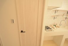 サニタリールームの扉を開けて目の前に見えるのは壁です。