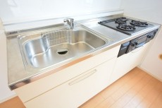 システムキッチンも白です。
