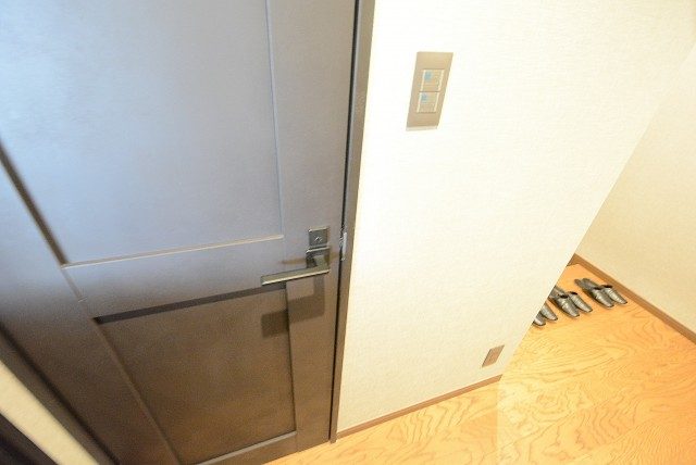 玄関には、テレビモニター付きインターホンが設置済み。ドアスコープ覗くのってなんかドキドキして嫌ですよね。もう安心です。