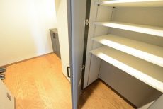 玄関左手にも収納棚が設置されています。収納が多いと生活スペースが大きくなるので本当にうれしいです。