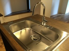浄水機能付きの水栓はシャワーヘッドになっています。シンクの隅々まで水を流すことが出来るのでお掃除や洗い物にと大活躍してくれますよ!
