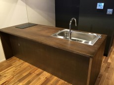 こちらはキッチン。大きな木目調の珍しいキッチンだと思います。