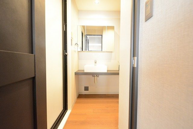 内部はキャビネットになっているのでハブラシや基礎化粧品などはこちらに収納することが出来ますよ!