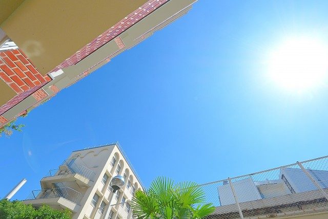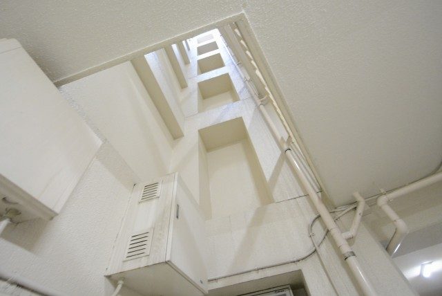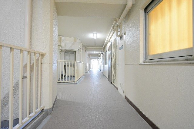 外廊下になっていますが、マンションの間の吹き抜けになっている部分なので、雨風が吹き込むことはあまりなさそうです。