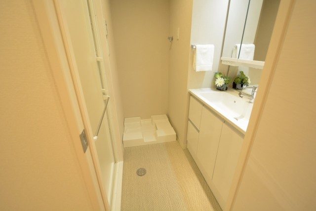洗面室は脱衣所も兼ねているので、脱いだお洋服はそのまま洗濯機に入れてしまいましょう!