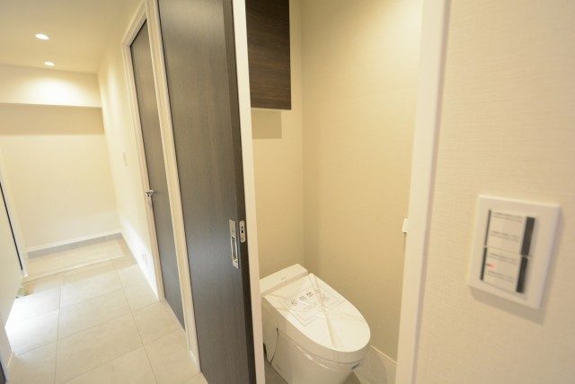 TOTOのウォシュレット付きのトイレが付いていますね。TOTOは業界最大手なだけあって
