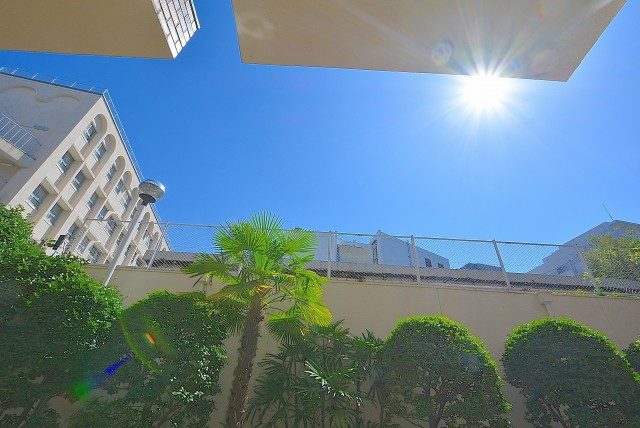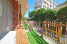 バルコニー前のこの部分は、まんしょんの敷地内の、道路より1段高くなっている場所です。