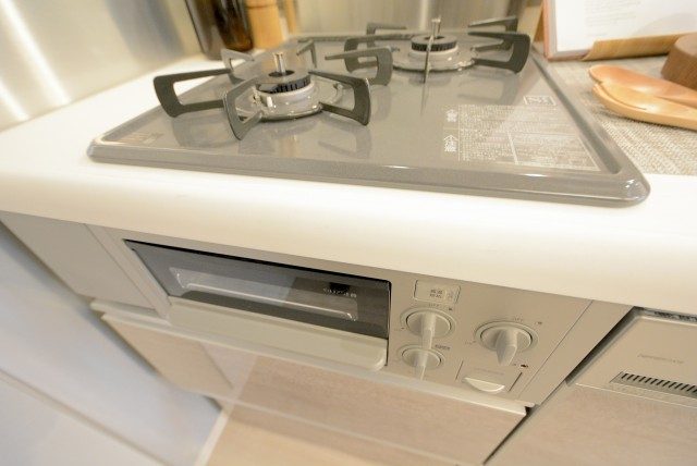 グリル付きの三口ガスコンロです (´∀`*)~♪