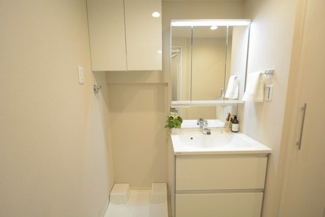 洗面台のお向かいは洗濯機置場!