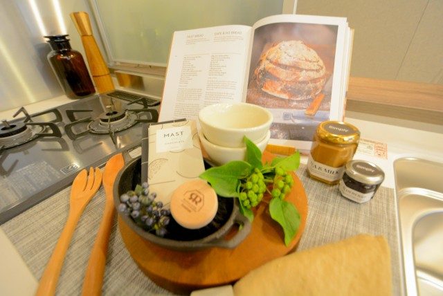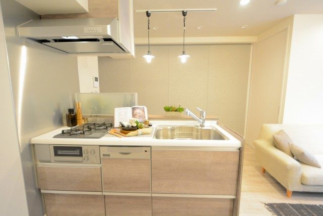 キッチンは横向きの壁付けタイプ。