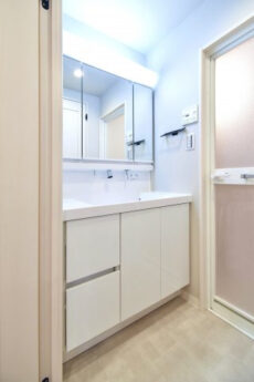 大きな鏡でひろーく映るので、毎朝の身支度も抜けなくばっちり!?