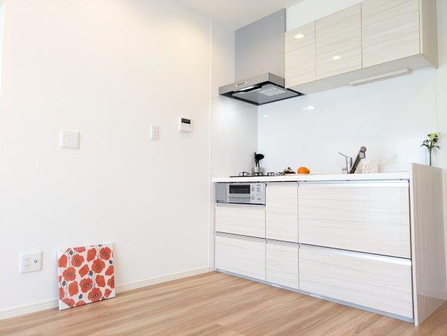 【キッチン:お部屋を広く使える壁付けタイプ】
