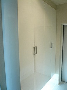 真っ白なトールサイズの玄関収納、4枚の扉を開くと沢山のシューズが仕舞えそうです。