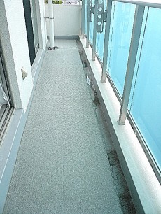 バルコニーの薄いブルーの目隠しが爽やかです。