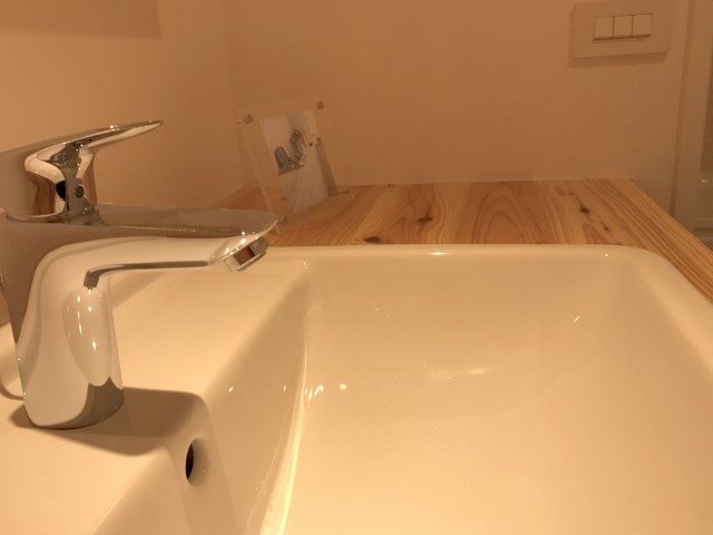 パナソニック製洗面化粧台です。スタイリッシュなスクエア型洗面ボウルがおしゃれ度アップ!