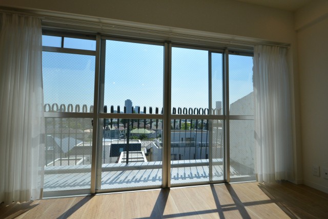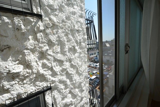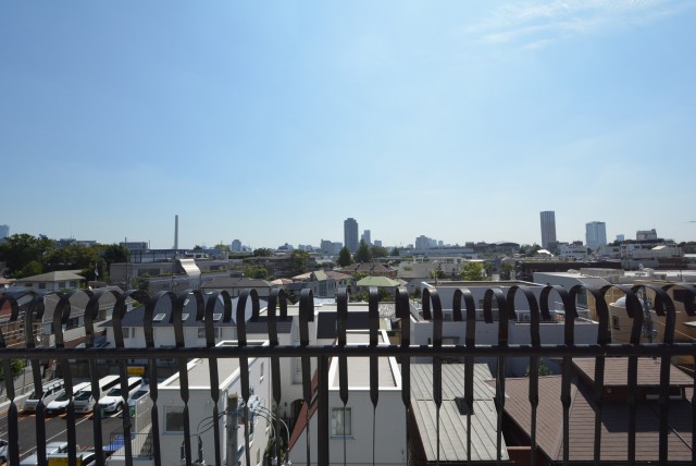 南東向き、手すり柵が特徴的なバルコニーです。秀和~というマンションはブルーの屋根やスタッコ調の外壁と共にこの手すりを使っています。街を歩いているといろいろな所にあるので、是非探してみて下さい。