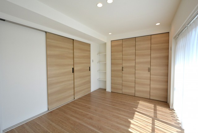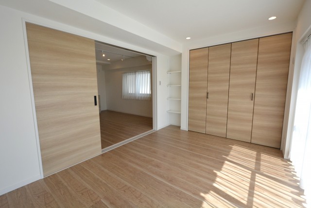 こちらは洋室。外には面していませんが明るいリビングとの間に窓があります。