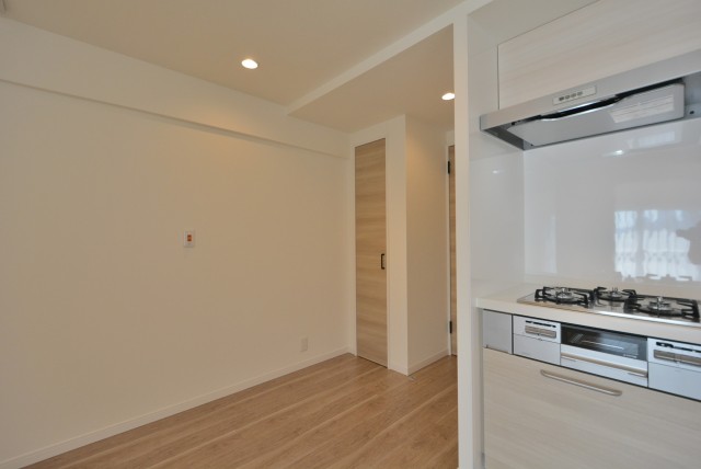 キッチンスペースはリビングの入口入ってすぐ左側になります。