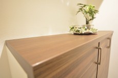 ワークトップにはしっとりした手触りが魅力の人造大理石が使われています。