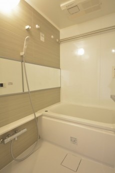 浴室はベージュの優しい雰囲気。疲れを癒すバスタイムにはピッタリですね。