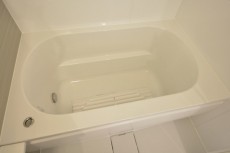 白一色で清潔感のあるバスルームは追い焚き機能もついて経済的。