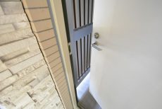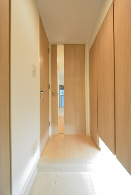 内廊下の玄関は静かでいいですよね。雨風の影響も無いので、玄関ドアの傷みも少なくてすみますよ。