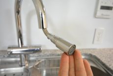 水栓のホースが伸びてヘッドが引き出せるので、シンクのお掃除や大きな鍋を洗ったりに便利ですよ。