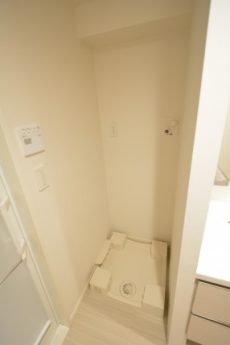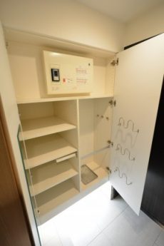 洗濯機スペースと、タオルなどが入れておける収納棚。