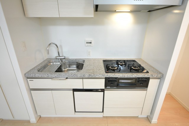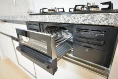 コンロは3口。タイマーや温度調整機能のある高機能コンロです。