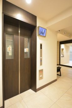 オートロックをぬけると洒落たオブジェなどがあり、その先にはエレベーター。一基ですが、21戸ですから十分ですね。