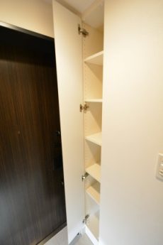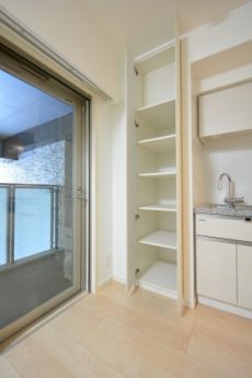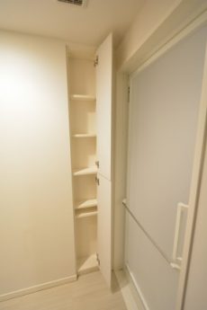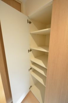 入ってすぐ右側にはまたしても大きな収納棚。いくらあっても困りませんよ♬