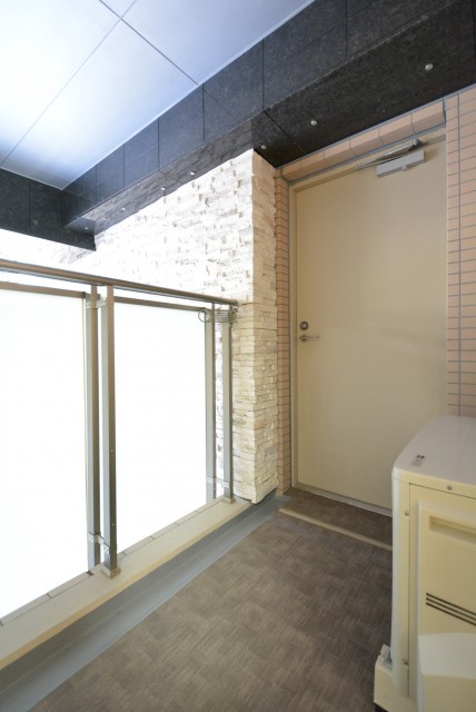 バルコニー端のドアを開けると、エントランス横に出る事が出来ました。おっ、ショートカットかと思ったんですが、どうやら非常口みたいです^^;)鍵が付いているのは内側だけで、外からは鍵の開け閉めが出来なくなっていましたので。