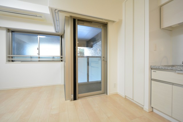 西側の窓は隣の建物が近いので陽当りは期待出来ませんが、二面に窓があって風通しは良さそうです。