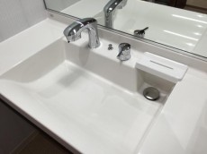 洗面ボウルの下、右側か鏡下とたくさんの収納。