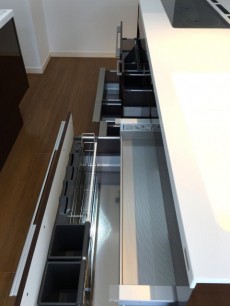 キャビネットはスライド式なのでキッチングッズの収納も楽々です。