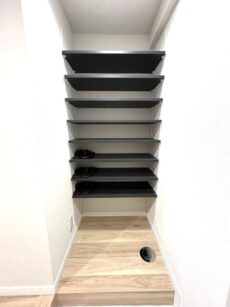 印象です。トールサイズのシューズボックスの扉には鏡が設置されていますので、