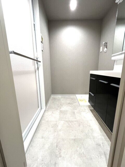 した印象。ホテルのような一枚鏡が高級感ありますよ!サイドに収納も設置されて