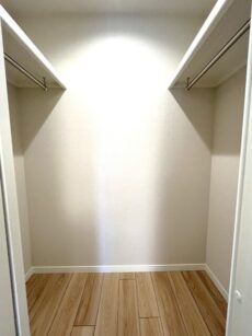 窓の反対側の引き戸を開けると、大容量のウォークインクローゼットが登場!衣類はもちろん、季節物やバッグなどもたっぷり収納できます◎