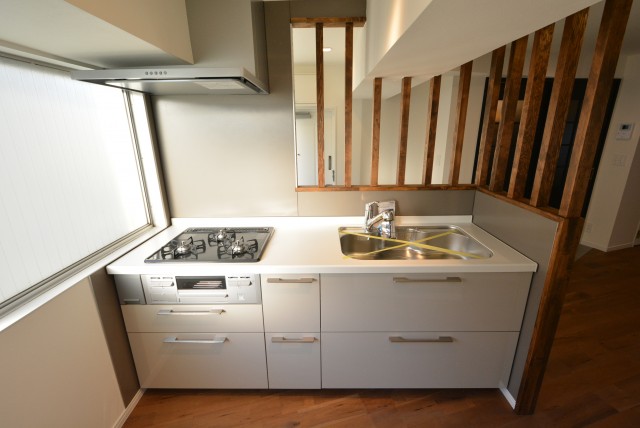 キッチンスペースはリビングダイニングからは見えない位置にあります。お友達が遊びに来た時でも雑多なところを思いっきり見られる心配はありません。