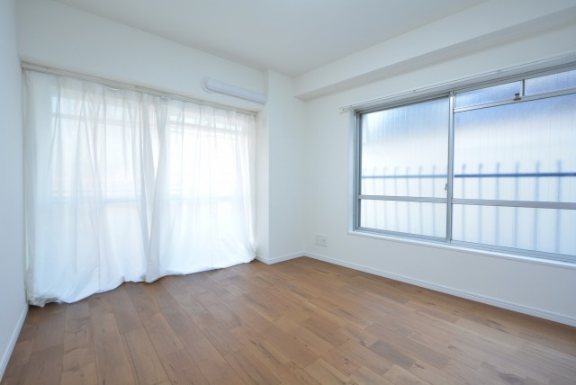 廊下を進んで右側にある扉は約5.7帖の洋室。窓の外は共用廊下なので換気程度に開けておくイメージでしょうか。