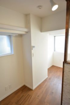 このお部屋の収納はオープンクローゼットでした。風通りが良く湿気が籠らない一方、埃などが付きやすく、お掃除が欠かせないですね。