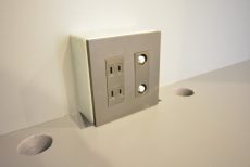 造り付けのTVボードにはコンセントやF形端子なども設置されています。コードがスッキリしていいですね。