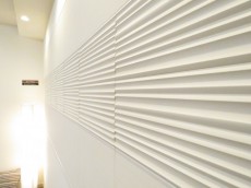 壁面の一部には調湿・消臭効果など空気を快適に保つエコカラットが設置されています。ダウンライトに照らされお部屋のアクセントにもなっています。