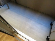 扉こそありませんが印象としてはほぼ独立タイプと言っていいと思います。調理台と揃いのカップボードが設置され統一感のある空間になっていますね。田中工藝というデザイン性に定評のあるメーカーの製品です。