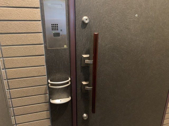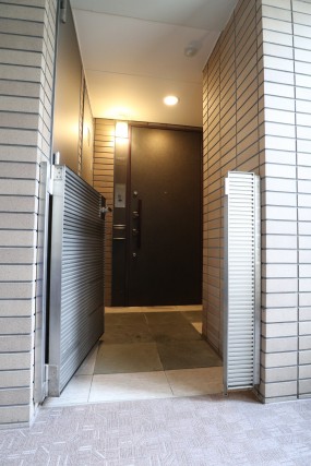 エントランス左には、駐輪場とゴミ置場に続く扉があります。