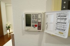 人感センサーがついており、人の気配で自動で照明が消灯します。消し忘れがなく経済的。インターホンは来訪者の顔が確認できるTVモニターがついています。
