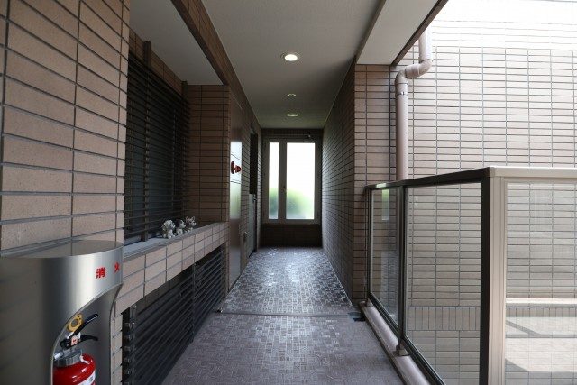 目の前の道幅はそれ程広くないものの、建物との間に駐車場を挟んでいるため開放的な眺めとなっています。