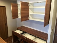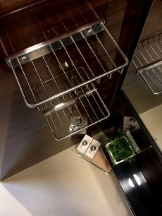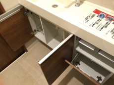 対面式ですので上部の収納はありませんが、シンク下の収納は、スライド式なのでキッチングッズの収納も楽々 (●´∀`)配管を気にせず収納できるので大容量。