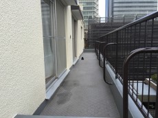 それでは、最後にバルコニーへ出てみます。南向き×東向きのL字型のバルコニー☆25.85㎡の大きなバルコニー☆明るさ、広さともにバッチリです。お洗濯物もバッチリ乾きそうです♫