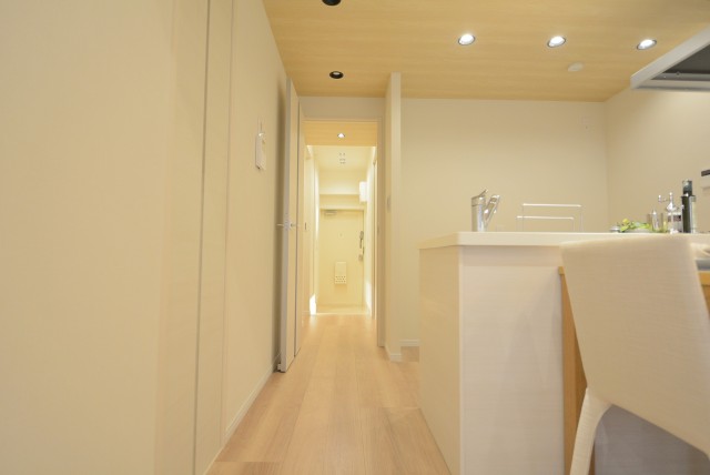 廊下は右に折れて続きます。玄関から廊下の奥が見えないつくりになっているのは助かります☆